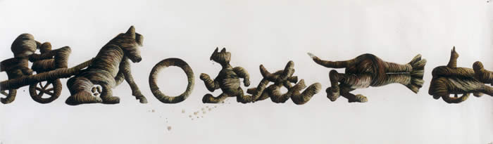Gopy's Parade, inkt en contékrijt op papier, 70 x 235 cm, 1994, collectie Fries Museum Leeuwarden