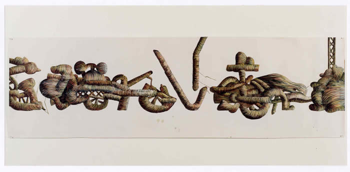 Parade, inkt en contékrijt op papier, 80 x 250 cm