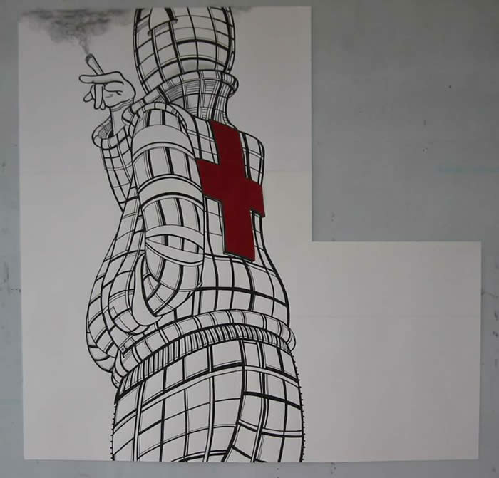 Smoke Man, diverse technieken op papier, 160 x 160 cm, 2003/2004