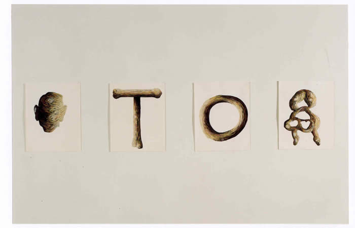 Tekens, inkt en contékrijt op papier, 25 x 30 cm (4 x), 1994/1995